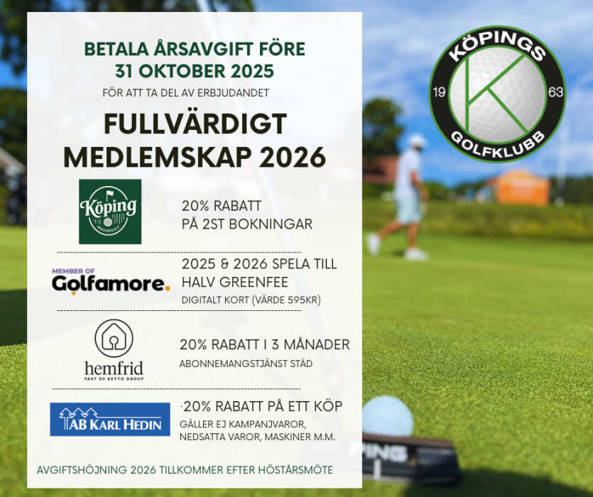 Vi inleder nytt samarbete med bl.a. Köping Indoorgolf och under hösten kommer fler fina erbjudanden från våra värdefulla partners.