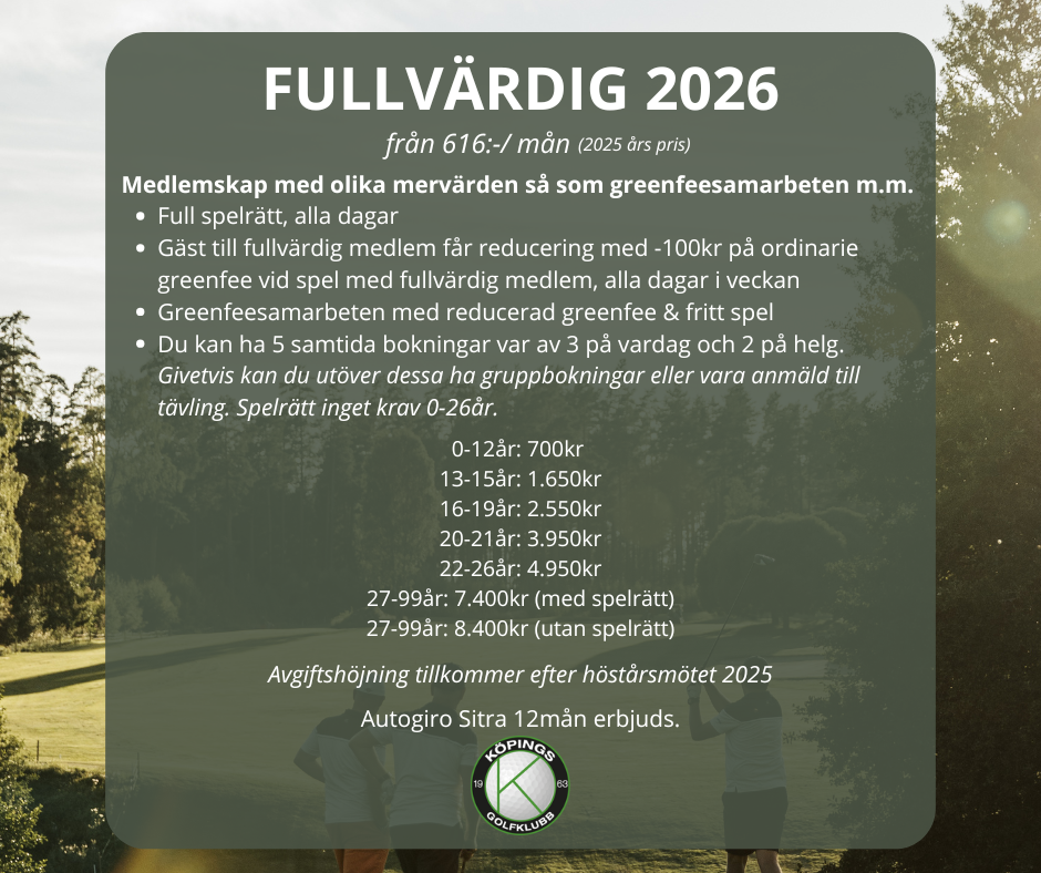 Erbjudande Fullvärdig/Fullvärdig XL medlemskap 2026